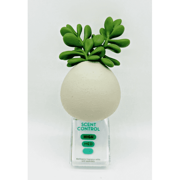 Enhance the ambiance of any room with the charming Bath and Body Works Succulent Wallflower Plugin. This classic succulent planter design adds a touch of nature to your decor while diffusing your favorite scents. It features convenient scent control, allowing you to adjust the amount of fragrance released into your space for a personalized experience. Measuring approximately 4.75 inches by 1.5 inches by 3 inches, this Wallflower Fragrance Plug is perfect for creating a welcoming atmosphere throughout your home. Simply pair it with your preferred Wallflowers fragrance refills, which are sold separately, to enjoy continuous, delightful aroma.