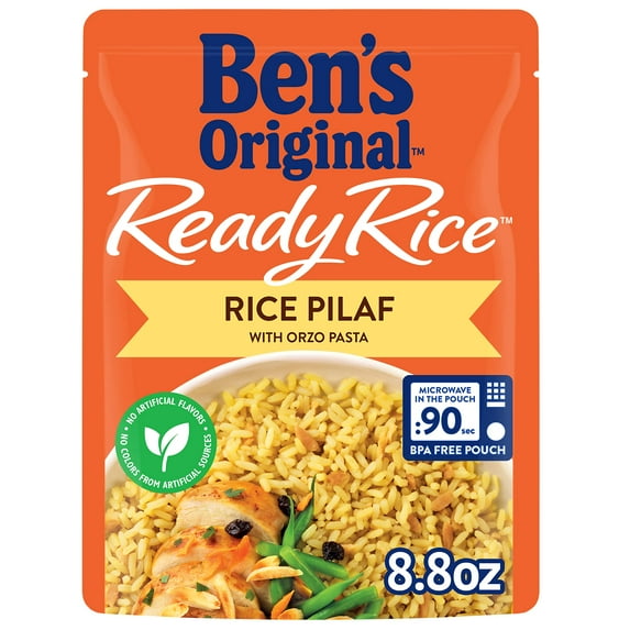 Ben's Original Ready Rice Rice Pilaf is a deliciously seasoned microwave rice that helps you prepare a savory cooked rice side dish in just 90 seconds. Blending long grain rice with orzo pasta herbs and seasonings this parboiled rice comes fully precooked for a quick bite you can heat in no time or a delicious meal side you and your family will love.