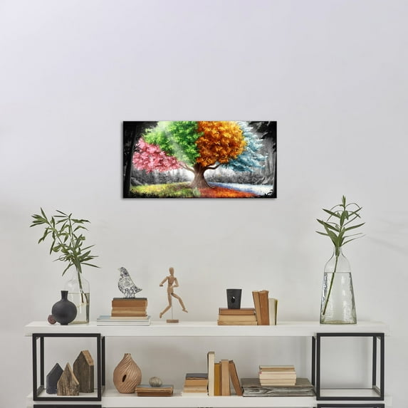 Hero image 0 of Framed Wall Art Clearance Four Seasons Tree Picture 1 Panel Spring Summer Autumn Winter Tree Painting Artwork for Dining Room Kitchen Home Decor Ready to Hang, 0 of 6