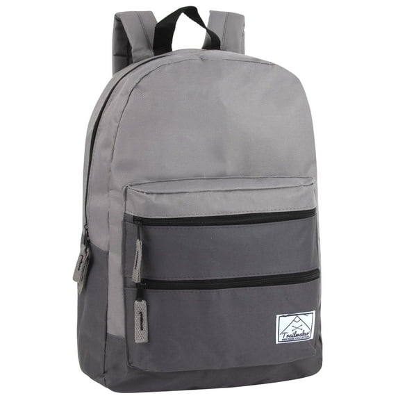 17”L Multi Pocket Dual Zipper Backpack with 2 Front Zippered Accessory Pockets and Large Main Compartment for Work, School, Travel and Commute in Charcoal and Gray17 L Multi Pocket Dual Zipper Backpack 2 Front Zippered Accessory Pockets Large Main Compartment Work School Travel Commute Charcoal GrayMulti Color Back Pack with Adjustable Padded Shoulder BlueTrailmaker Multi Color backpack with adjustable padded shoulder straps Navy Blue