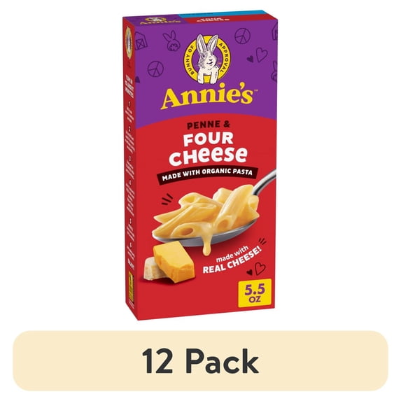(12 pack) Annie's Penne and Four Cheese, Made with Organic Pasta and Real Cheese, 5.5 oz
