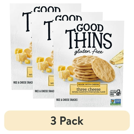 (3 pack) GOOD THINS Three Cheese Rice & Cheese Snacks Gluten Free Crackers, Snack Crackers, 3.5 oz
