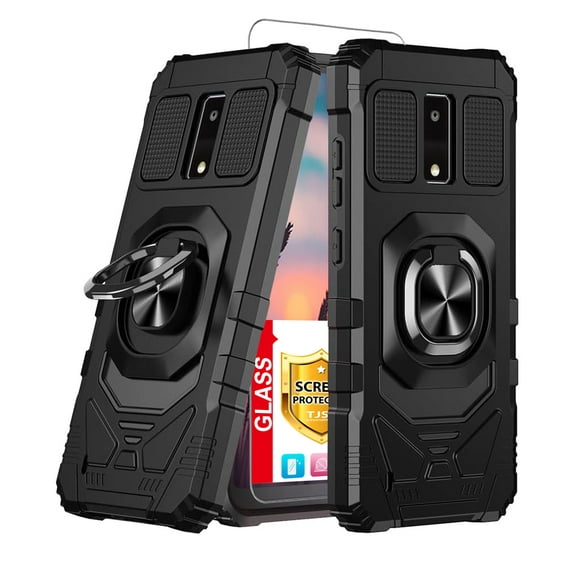 Hero image 0 of TJS for BLU View 4 (B135DL) Phone Case, with Tempered Glass Screen Protector, [Military Grade] Robotic Magnetic Support Car Mount Metal Ring Holder Kickstand Cover (Black), 0 of 7