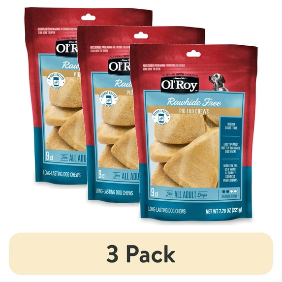 - 3-pack of Ol' Roy Peanut Butter Flavor Pig Ear Chews, 7.78 oz, 9 Count