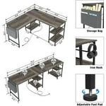 COMHOMA 59" L Shaped Computer Desk with LED Sensor Lights and Power Outlets, Reversible L Shaped Gaming Desk with Storage Bag and Hutch Monitor Stand, Home Office Desk with USB Port