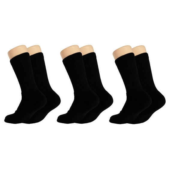 Solid Cotton Cushion Crew Socks for Women and Men Black 3 Pairs Size 10-13
