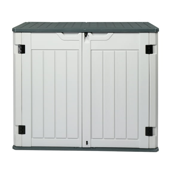 The Ktaxon Patio-Store Horizontal Shed provides accessible storage for your backyard, garden, or poolside. With its 34 cu. ft. storage capacity, this shed boasts a spacious interior that can hold up to two - 32Gal trash cans, or a wide array of patio accessories, pool equipment or garden tools.