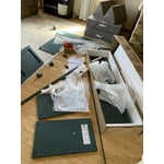 Its heavy when it shows up, need 2 people to maneuver from your front door, over 100lbs. Easy to assemble just take your time took me about a hour or so over 2 days taking my time. Only thing extra you'll want to have on hand is another tiny Elmer's white glue, what came with this was not enough.