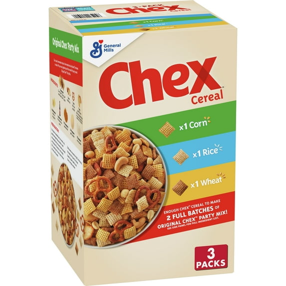 - CHEX CEREAL TRIPLE PACK: This triple pack box includes Corn Chex, Rice Chex and Wheat Chex cereal so you have enough Chex Cereal to make a double batch of Original Chex Mix with just this box.