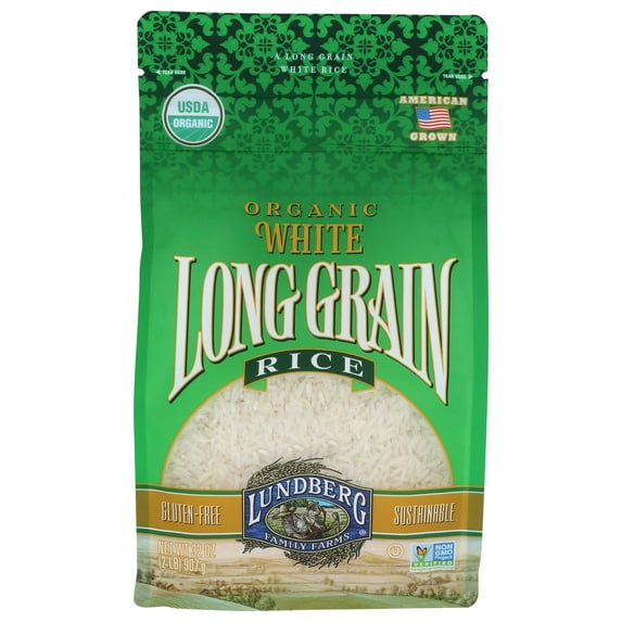 The Lundberg Farms Organic Long Grain White Rice is light, versatile, subtle in flavor, and doesn't stick to each other when cooked, making it suitable for various dishes. Kosher certified, vegan, and gluten free, it is suitable for various dietary needs. The bulk case with 6 packs of Lundberg Farms Long Grain White Rice is ideal for supermarkets, hypermarkets, and retail stores. LUNDBERG FAMILY FARMS LONG GRAIN WHITE RICE OFFERS A DELIGHTFUL HEALTHY ADDITION TO YOUR MEALS. A PERFECT ACCOMPANIMENT TO RECIPES WHEN POTATOES JUST WON'T DO. LONG GRAIN RICE IS A FOOD YOU CAN BOTH ENJOY AND FEEL GOOD ABOUT EATING. THIS LONG GRAIN RICE HAS A COMPLEX, DELICIOUS FLAVOR, PLUS IT'S ORGANIC. IT PROVIDES THE ADDITIONAL ADVANTAGE OF BEING KOSHER, NON-GMO, VEGAN AND GLUTEN FREE. THERE ARE ABOUT 20 GENEROUS SERVINGS IN THIS 32 OZ. BAG. A 1/4 CUP MEASUREMENT OF DRY RICE CONTAINS 160 CALORIES. SEE NUTRITION PANEL FOR ALLERGENS. ENJOY THIS GREAT COMPLEMENT TO A HEALTHY DIET.