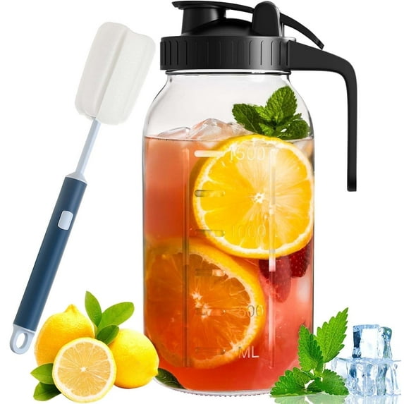 Hero image 0 of Glass Pitcher Mason Jar Pitcher for Fridge Door Wide Mouth Leak-Proof Glass Pitchers with Lids and Handle Dishwasher Safe for Juice,Sun Tea, 64oz Drink Container , Black, 0 of 8