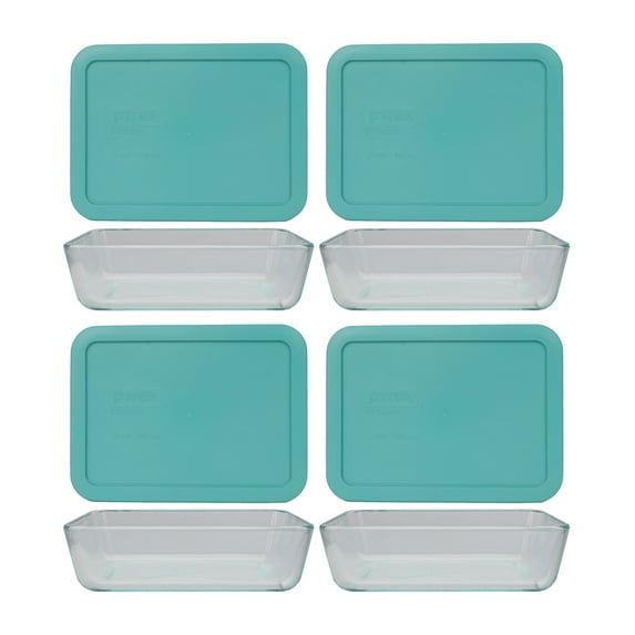 Pyrex 7210 3-Cup Glass Food Storage Dish and 7210-PC Turquoise Plastic Lid (4-Pack)