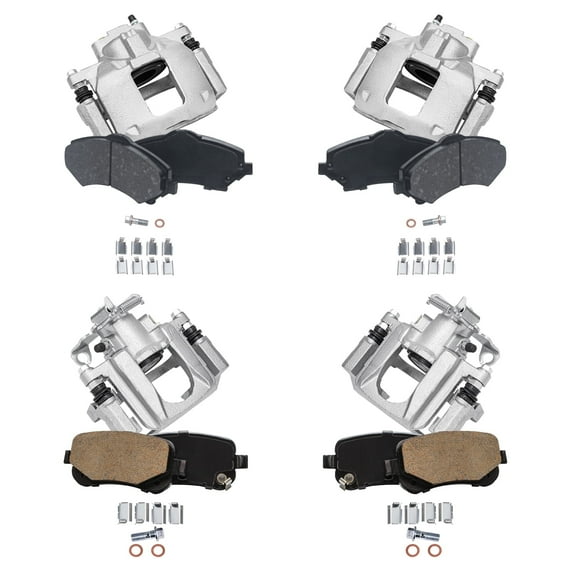 - Brake Kit Includes: 2x Front Disc Brake Calipers w/ Bracket + 2x Rear Disc Brake Calipers w/ Bracket + 2x Front Ceramic Brake Pads (Hardware Included) + 2x Rear Ceramic Brake Pads (Hardware Included)