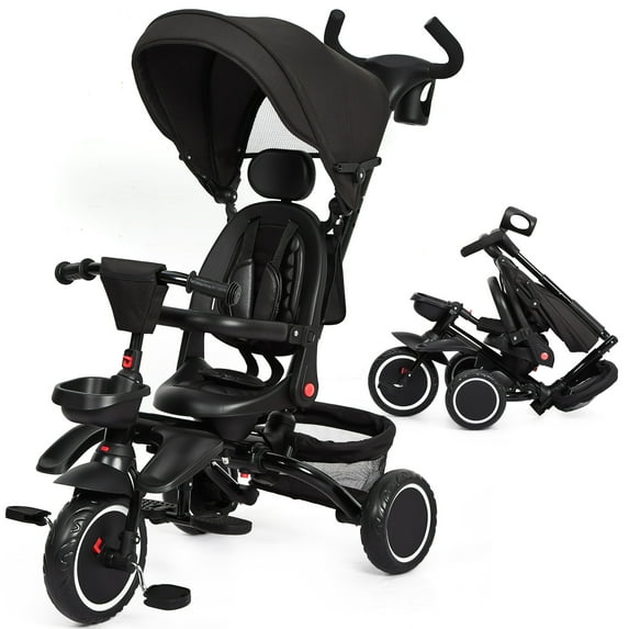 Homhougo Baby Tricycle 7 in 1 Folding Toddler Bike with Removable Adjustable Push Handle, Canopy, Rotatable Seat, Safety Harness, Cup Holder and Storage for 1-5 Year Old(Black)Homhougo Baby Tricycle 7 1 Folding Toddler Bike Removable Adjustable Push Handle Canopy Rotatable Seat Safety Harness Cup Holder Storage 1 5 Year OldHomhougo Baby Tricycle 7 1 Folding Toddler Bike Removable Adjustable Push Handle Canopy Rotatable Seat Safety Harness Cup Holder Storage 1 6 Year OldHomhougo Baby Tricycle 7 1 Folding Toddler Bike Removable Adjustable Push Handle Canopy Rotatable Seat Safety Harness Cup Holder Storage 1 5 Year OldHomhougo Baby Tricycle 7 1 Folding Toddler Bike Removable Adjustable Push Handle Canopy Rotatable Seat Safety Harness Cup Holder Storage 1 5 Year Old