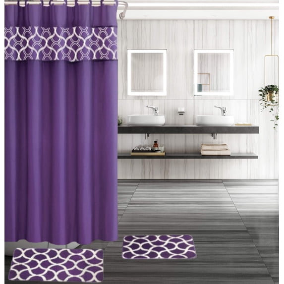 SAMIMPORT-2011 Purple Geometric Print Polyester Shower Curtain, 72x72in 15 Count