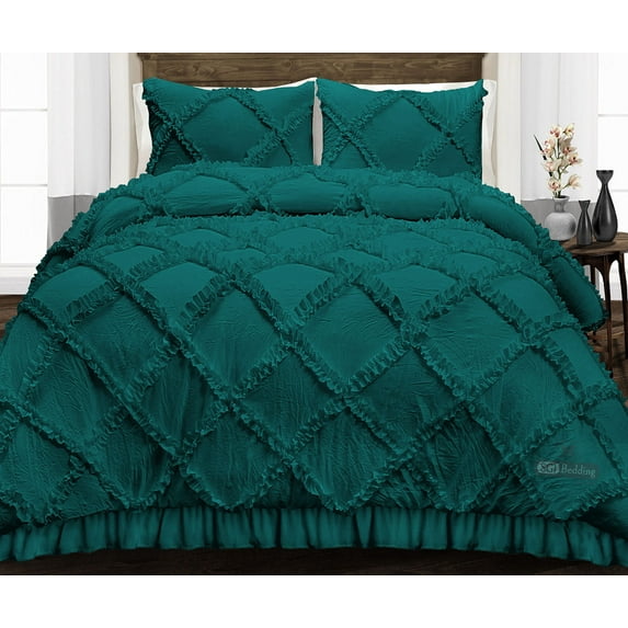 SGI Oversized /Palatial King Diamond Ruffle Comforter Set Microfiber 3 Piece Teal