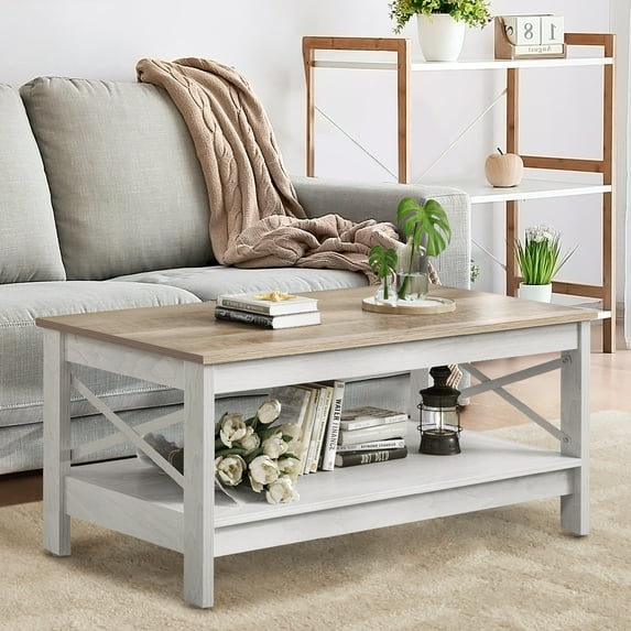 Now$8999current price Now $89.99, Was $187.58$187.58More options from $57.69Dextrus Farmhouse 2-Tier Rectangular Wood Coffee Table, Brown/White
