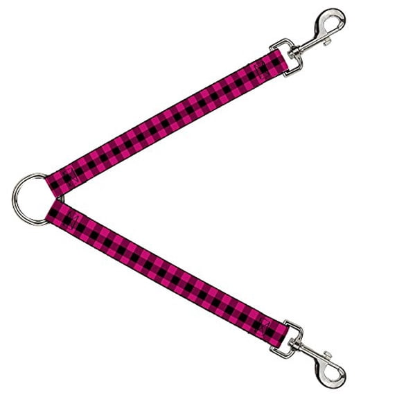 Buckle-Down Leash Splitter - Buffalo Plaid Black Fuchsia - 1" Wide - 30" Length