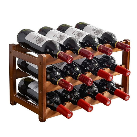 Tier 12 Bottles Bamboo Wine Storage Shelf, Sturdy Wine Bottle Holder for Cabinet and Table, Wine Rack Free Standing Furniture