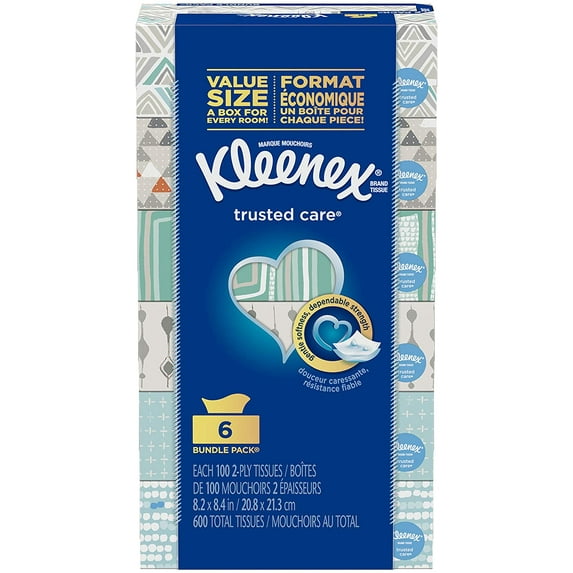75954.6 out of 5 Stars. 7595 reviewsShipping, arrives in 3+ daysKleenex Trusted Care Facial Tissues, 6 Flat Boxes, 160 Tissues per Box, 2-Ply $10.48 $1.09/100 ct