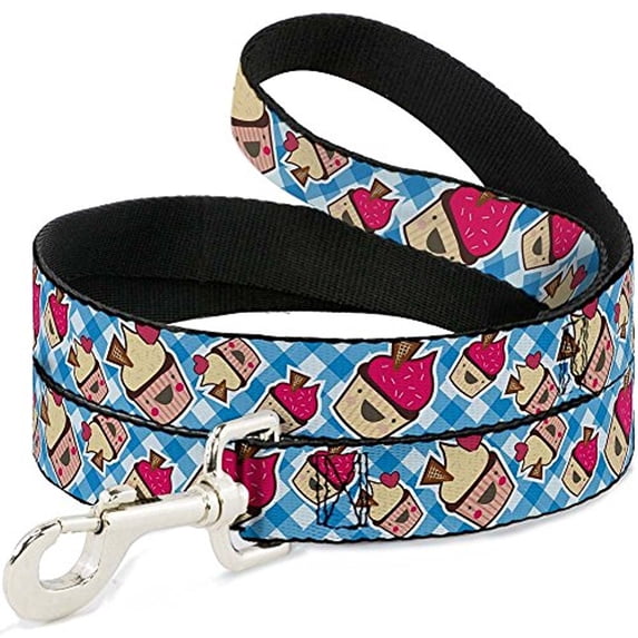 Buckle-Down DL-W30855-N Narrow 0.5" Happy Cupcakes Buffalo Plaid White Blue Dog Leash