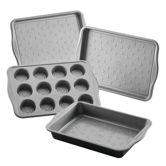 | Color | BlackFarberware Disney Bake with Mickey Mouse 4-Piece Bakeware Set | BlackFarberware Disney Bake with Mickey Mouse 4 Pcs Cake, Dishwasher Safe and Oven Safe to 450°F, Black | GrayKikcoin Bakeware Set, 33-Piece Baking Pans Set, Nonstick Baking Sheet Pans for Kitchen with Silicone Handles, Nonstick Cookie Sheets, Loaf Pan, Gray | RedFarberware Disney Bake with Mickey Mouse 4 Pcs Nonstick Bakeware Set, Dishwasher Safe and Oven Safe to 450°F, Red |