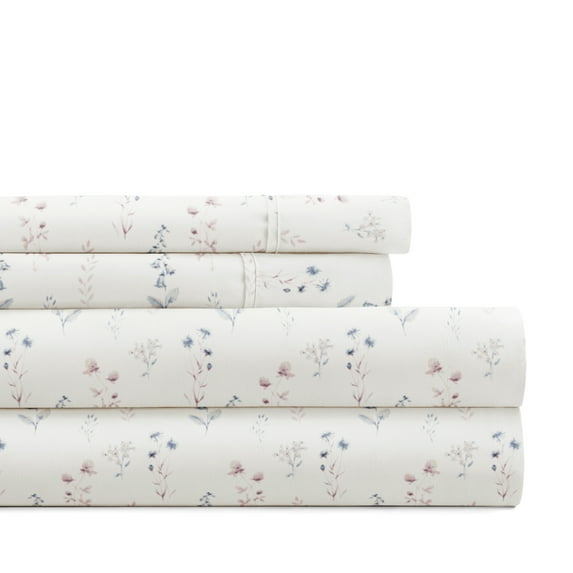 Hero image 0 of Noble Linens 4 Piece Pattern Microfiber Bed Sheets Set, Ivory Painted Meadow, Queen, 0 of 8