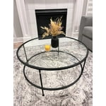 Merrick Lane Round Glass Coffee Table with Round Brushed Gold Frame
