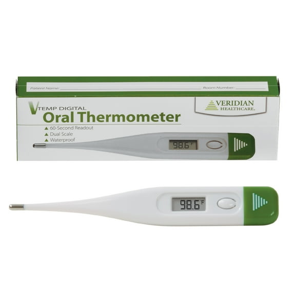 Hero image 0 of Veridian 60-Second Digital Thermometer | Fever Alert + Memory Recall | Clinical Rigid Tip | Water-Resistant | Case + Probe Covers, 0 of 6