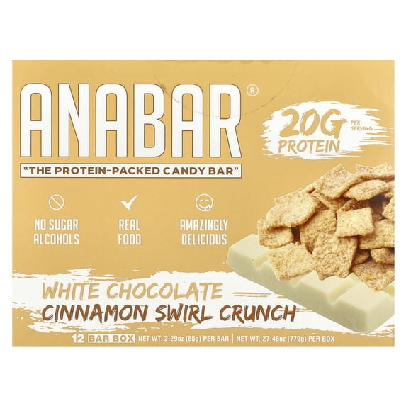 The Anabar The Protein-Packed Candy Bar®, White Chocolate Cinnamon Swirl Crunch, 12 Bars, 2.29 oz (65 g) EachAnabar Cinnamon Swirl Crunch 12 Protein Bars Final Boss Performance 21 GramsAnabar Fruity Cereal Crunch 12 Protein Bars Final Boss Performance 21 GramsThe Anabar White Chocolate Very Berry Crunch Whole Food Performance Bars Protein Bar 21g Pack of 12Anabar Cookies and Cream 12 Protein Bars Final Boss Performance 21 GramsAnabar Campfire S Mores 12 Protein Bars Final Boss Performance 21 Grams SmoresAnabar Chocolate PB and Jelly 12 Protein Bars Final Boss Performance 21 Grams