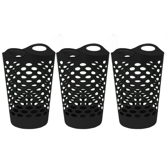 Mainstays Flexible Round Plastic Laundry Hamper, 3 Pack, BlackMainstays Flexible Round Plastic Laundry Hamper 3 Pack BlackMainstays Flexible Plastic Round Laundry Hampers with Handles White 3 PackMainstays Flex Hamper