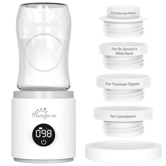 【Portable & Rechargeable】Mumgaroo portable bottle warmer with a large 9000mAh battery, battery powered, compact and portable, takes up little space in a diaper bag and travel with your baby. Equipped with 3ft USB cable, it can heat continuously for 40 minutes on a full charge, or keep 4 oz of milk warm for 12 hours. This means you will be allowed to feed your baby anytime, anywhere. 【Multiple Adapters Fit Most Bottles】Mumgaroo baby bottle warmer is equipped with 4 adapters, which can perfectly fit most brands of baby bottles, compatible with AVENT, NUK, Dr.brown's, Comotomo, Tommee Tippee, etc., please check the list of compatible feeding bottles or match the corresponding bottle mouth diameter to ensure compatibility with your bottle. Mumgaroo bottle warmer is the perfect baby shower gift and go-to choice on the go. 【Quick Heating & 4 Temperature Settings】Mumgaroo portable bottle warmer for travel has 4 temperature settings and is easy to operate. It only takes 4 minutes to heat milk safely, quickly and evenly. Baby will no longer cry because of cold milk or hunger~ (98°F is the ideal temperature for breastmilk, 104°F is recommended for formula) 【LED Screen & Real-time Temperature Display】LED smart display with precise temperature control system, Mumgaroo bottle warmers for all bottles can display the temperature in real time to monitor and check the temperature, LED touch panel has a simple and stylish appearance, compared with physical buttons, it consumes less power, is more durable and easy to clean. 【Safety Heating & Leak-proof】Mumgaroo portable baby bottle warmer uses food-grade materials to ensure baby safety, SUS316 stainless steel heating sensor and double-layer heater sealing ring design to ensure even&effective heating, and without the hassle of leaking. 【Lifetime After-sales Service】Mumgaroo has always been committed to providing customers with top products and good service. If you encounter any problems during use, you can contact us through "Contact Sellers", we promise to solve your problem perfectly in the end.