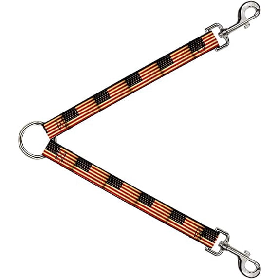 Buckle-Down Dog Leash Splitter Vintage US Flag Repeat 1 Foot Long 1 Inch Wide