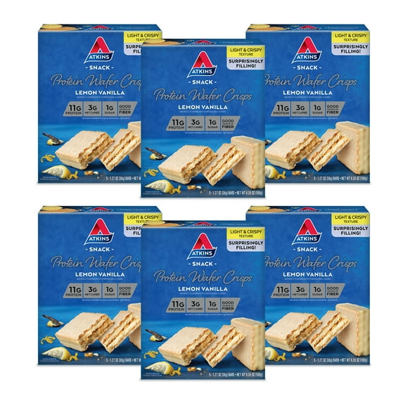 Atkins Protein Wafer Crisps, Lemon Vanilla, Keto Friendly, 6/5ct Boxes