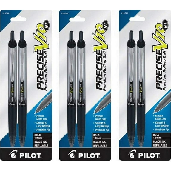 Pilot Precise V10 RT Retractable Premium Rolling Ball Pens, Bold, 1.0 mm, Black Ink, 2 Pack (13548)