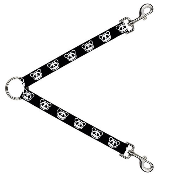 Buckle-Down Leash Splitter - Panda Bear Cartoon2 Black White - 1" Wide - 30" Length