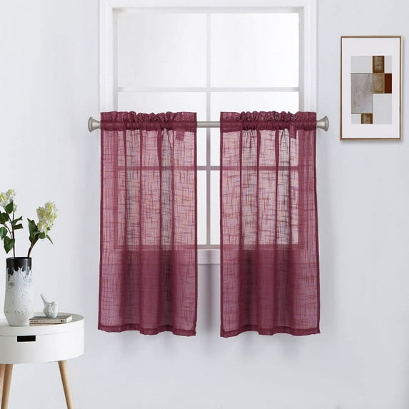 Hero image 0 of Set of 2 Linen Textured 45 Inches Long Window Treatment Curtains Tier Panels for Kitchen/Cafe (45" Long, Burgundy), 0 of 4