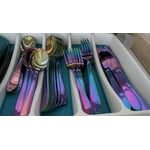 Cambridge Rainbow Mirror Flatware Set I love this set! The rainbow mirror finish is gorgeous, and it's such a fun addition to my table. It works great on its own or mixed in with my regular flatware for a pop of color. I've gotten lots of compliments on the aesthetic—everyone notices it. Overall, it's stylish, unique, and surprisingly versatile.