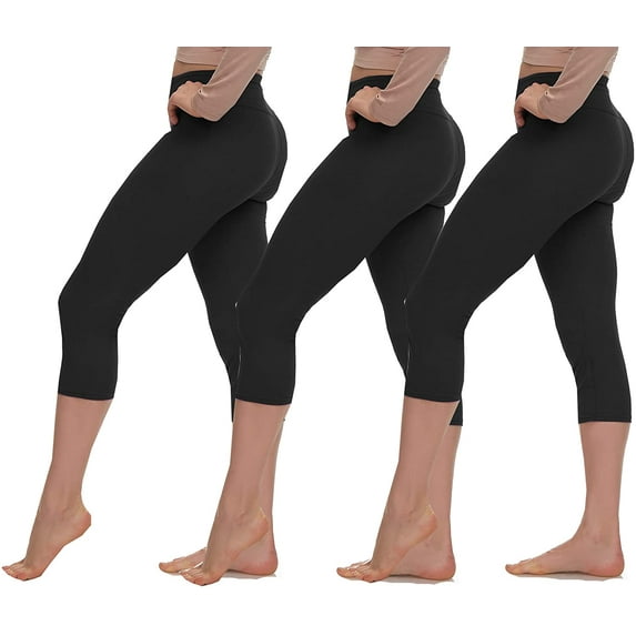 LMB Capri Leggings for Women Buttery Soft Polyester Fabric, Black 3-Pack, XS - L
