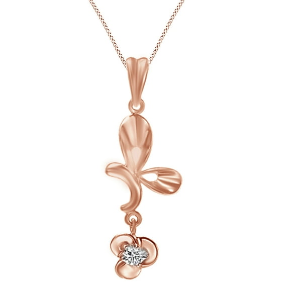 AFFY 0.10 Ct Natural Diamond Flower Pendant Necklace In Two Tone Gold