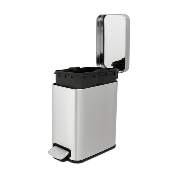 Hero image 0 of Qualiazero Trash Can, 1.3 Gallon Slim Step On Bathroom Trash Can, Silver, Stainless Steel, 0 of 9
