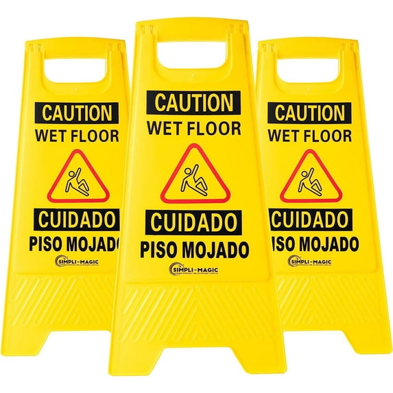 Simpli-Magic Wet Floor Signs in English and Spanish, Basic Yellow Safety Signs, 3-Pack