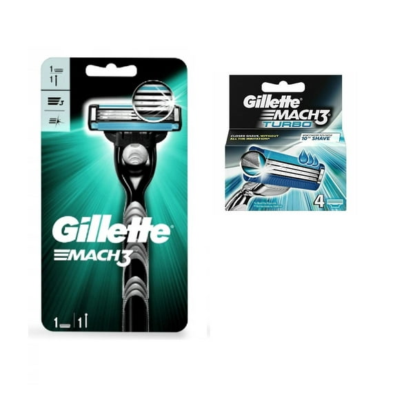 Gillette Mach3 Razor + Mach3 Turbo Refill Blade Cartridges, 4 count
