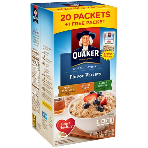 3 optionsAvailable in additional 3 options$577current price $5.7719.0 ¢/ozQuaker Instant Oatmeal, Variety, 12.1 Oz, 12 Count