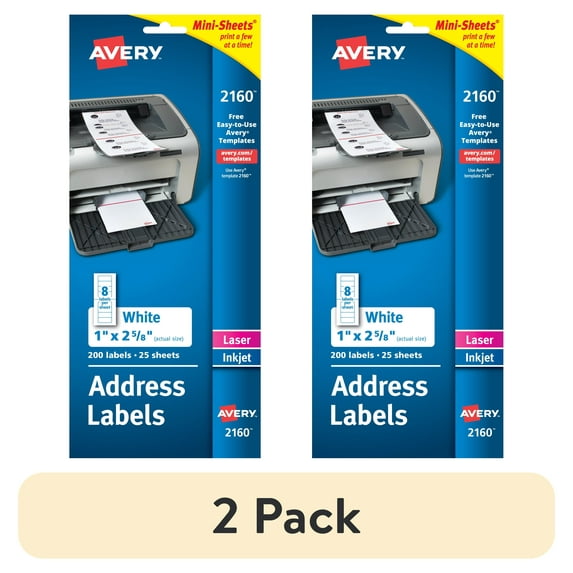 - 2-pack of Avery Mini-Sheets Address Labels, Permanent Adhesive, 1" x 2-5/8", 200 Labels (2160)
