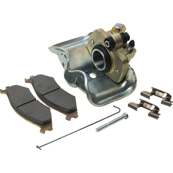 Caliper Assembly, Set of pads (1 inner and 1 outer), Bolt, Retainer clamp, 2 Spring clips
