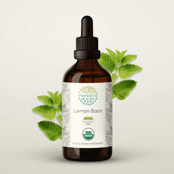 HerbEra Lemon Balm Tincture, Organic Herbal Dietary Supplement for Mood Support, Certified Organic Lemon Balm (Melissa officinalis) Dried Leaf Extract, Natural, Alcohol-Free, Drops 4 ozLemon Balm Alcohol FREE Herbal Extract Tincture Super Concentrated Lemon Balm Melissa officinalis Dried Leaf 4 ozLemon Balm Alcohol FREE Herbal Extract Tincture Super Concentrated Lemon Balm Melissa officinalis Dried Leaf 2 oz