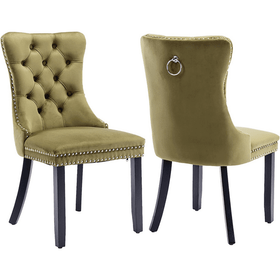 Hero image 0 of LegaHome Dining Chairs Set of 2, Velvet Upholstered Dining Chair with Nailhead Trim&Solid Wood Legs, Button Padded Dining Chairs Set for Kitchen Dining Room Living Room, Olive Green, 0 of 10