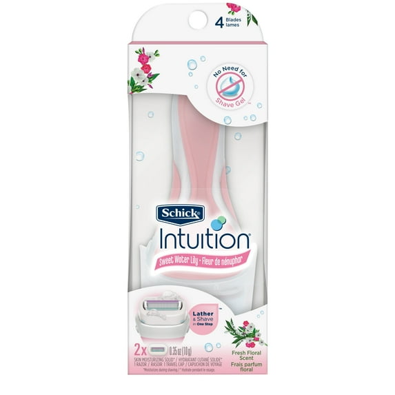 Schick Intuition 4-Blade Sweet Water Lily Women's Razor Handle Plus 2 Razor Blade Cartridge Refills, Lather & Shave In One Step, Fresh Floral ScentSchick Intuition 4 Blade Sweet Water Lily Women s Razor Handle Plus 2 Razor Blade Cartridge Refills Lather Shave In One Step Fresh Floral Scent2 pack Schick Intuition 4 Blade Sweet Water Lily Women s Razor Handle Plus 2 Razor Blade Cartridge Refills Lather Shave One Step Fresh Floral Scent3 pack Schick Intuition 4 Blade Sweet Water Lily Women s Razor Handle Plus 2 Razor Blade Cartridge Refills Lather Shave One Step Fresh Floral Scent4 pack Schick Intuition 4 Blade Sweet Water Lily Women s Razor Handle Plus 2 Razor Blade Cartridge Refills Lather Shave One Step Fresh Floral Scent6 pack Schick Intuition 4 Blade Sweet Water Lily Women s Razor Handle Plus 2 Razor Blade Cartridge Refills Lather Shave One Step Fresh Floral Scent