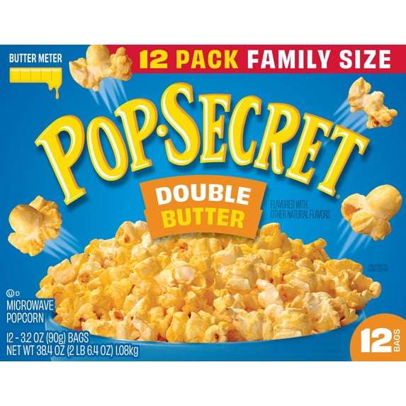 Pop Secret Popcorn, Double Butter Microwave Popcorn, 3.2 oz Sharing Bags, 12 Ct